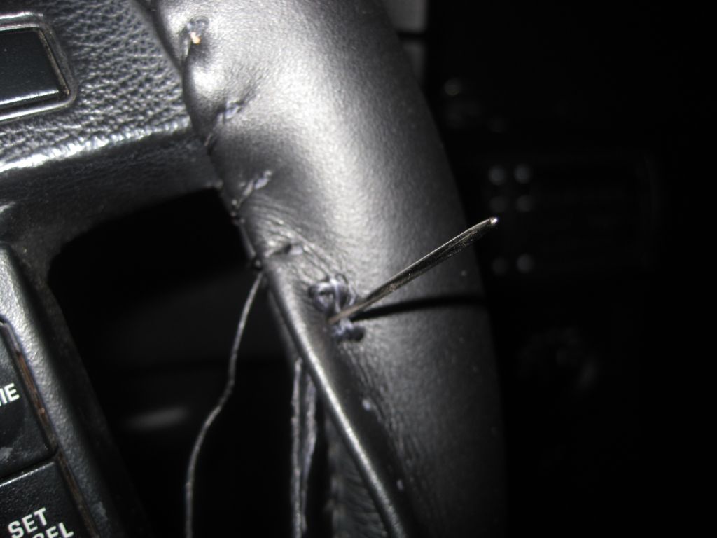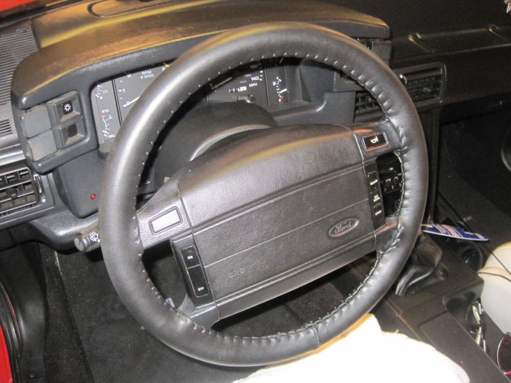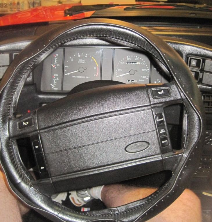 Pros: leather, good feel, sturdy, gives formula one racer type feel to car (slightly thicker wheel), even people like me can do it.