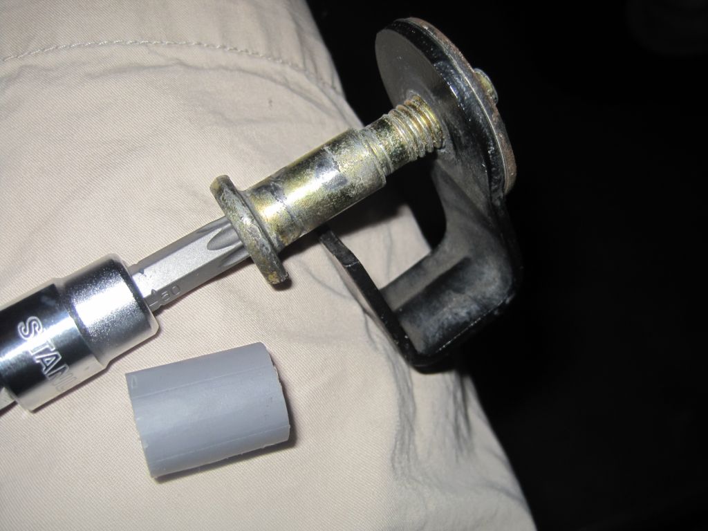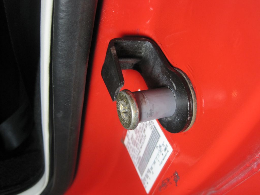 It's been a fun week. Today, tackled door striker problem that was causing the driver door to rattle when driving down the street. I thought maybe my hinges were weak at first, but someone knowledgeable pointed out to me that the grey bushing was gone on the door striker which keep the door from moving around.
