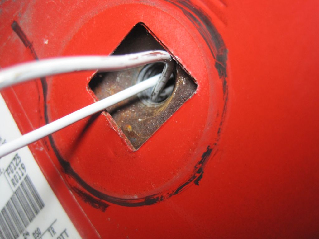 • If you are into functional vs OEM, use a piece of copper water pipe to replace the grey bushing. Lasts a lot longer and takes up the slack on the door strike post.